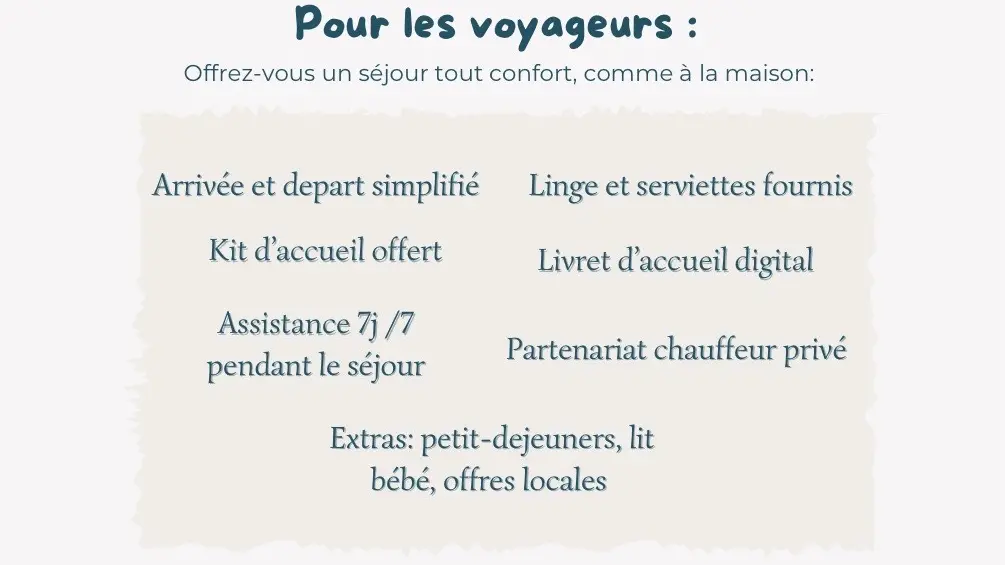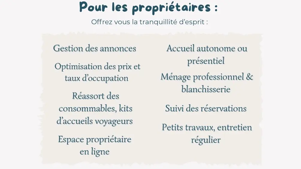 Nous gérons vos biens avec soin et proposons des prestations personnalisées, pensées pour sublimer chaque séjour et vous offrir une tranquillité totale.