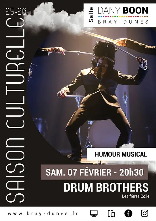 Nés de l'union insolite entre une grosse caisse et une caisse claire, les Frères Colle tambourinent depuis leur naissance. Avec « DRUM BROTHERS », ils nous proposent un spectacle original, une performance de jonglerie musicale virevoltante et remplie d'humour.