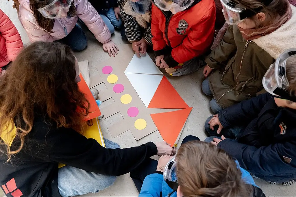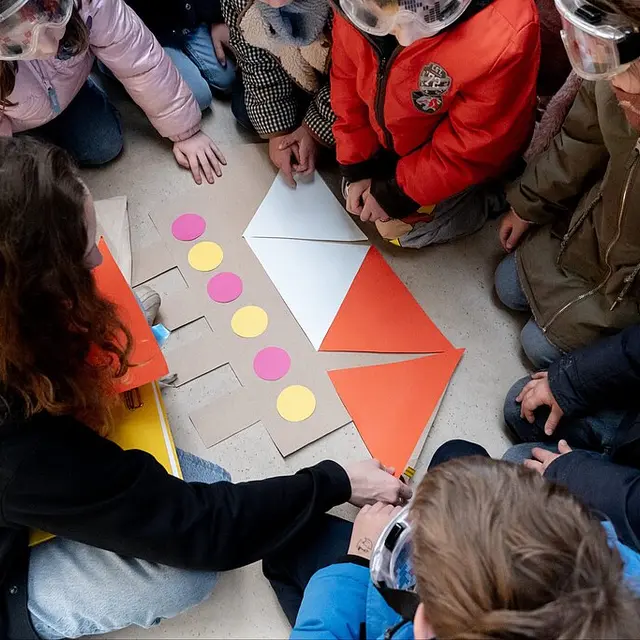 Formes et couleurs : en compagnie d'un.e membre de l'équipe de médiation, nommons les formes et les couleurs : cercle, carré, rouge, bleu… Tiens, peu à peu, ils se transforment en petits personnages rigolos. Chacun a sa propre personnalité, et ensemble, ils apprennent à décrire leurs émotions.