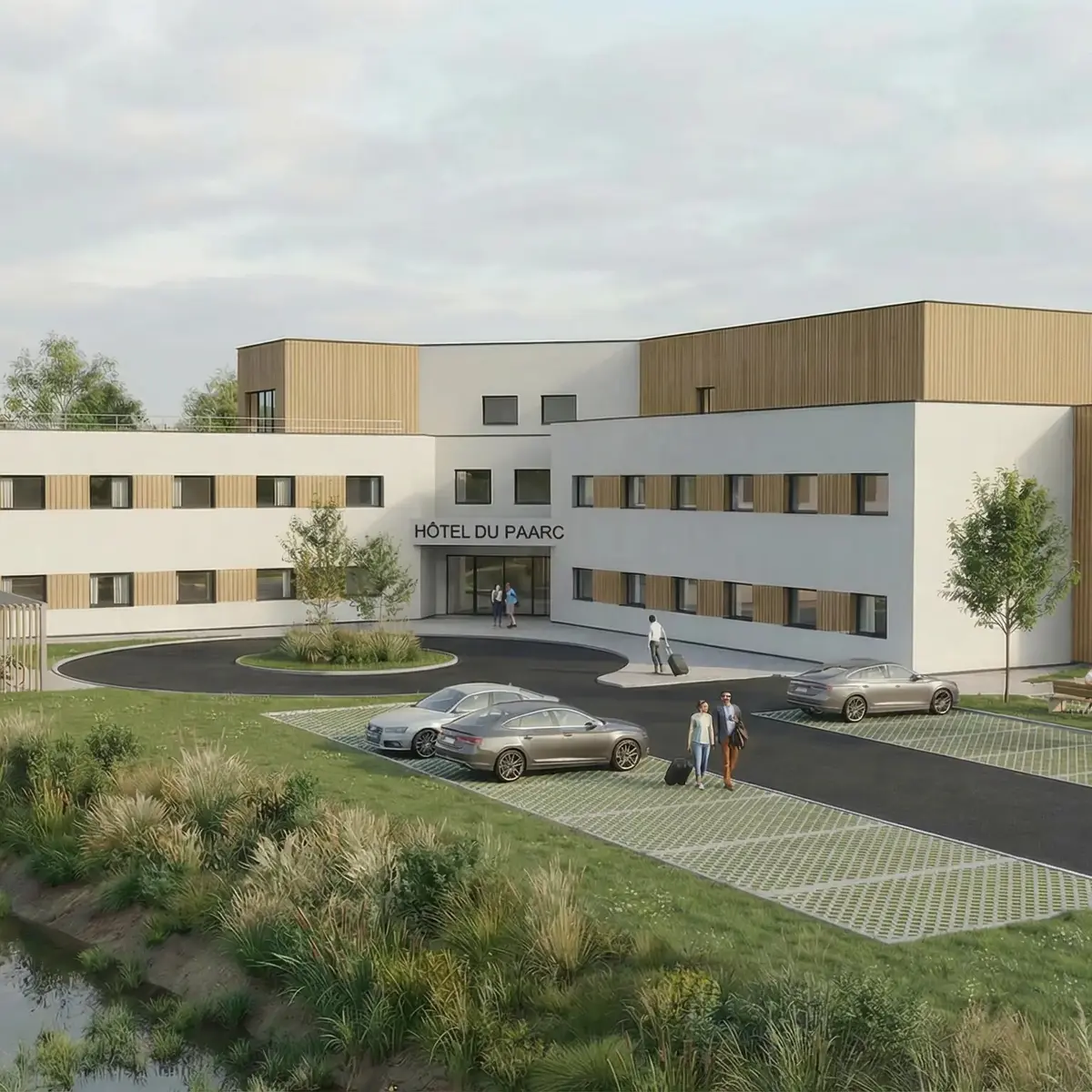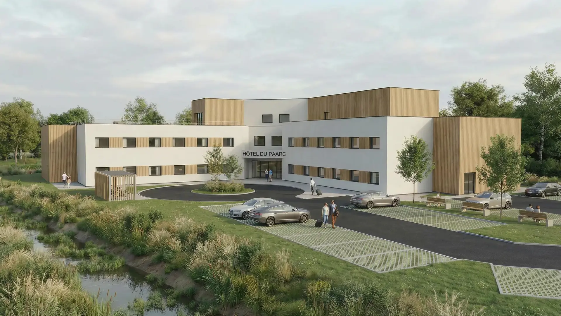 C'est un hôtel neuf sur trois étages de la chaine "The Originals City" comprenant 48 chambres dont 8 chambres pour personnes à mobilité réduite, 2 salles de séminaires. Au dernier étage, un restaurant de 80 couverts s'ouvrira sur un spacieux rooftop surplombant le domaine du Paarc des Rives de l'Aa.
