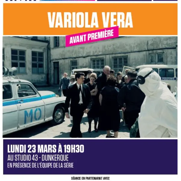 Le lundi 23 mars à 19h30 au Studio 43 à Dunkerque, venez découvrir en avant- première les 2 premiers épisodes de la série “Variola vera” en présence de l'équipe de la série.