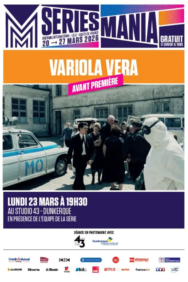 Le lundi 23 mars à 19h30 au Studio 43 à Dunkerque, venez découvrir en avant- première les 2 premiers épisodes de la série “Variola vera” en présence de l'équipe de la série.