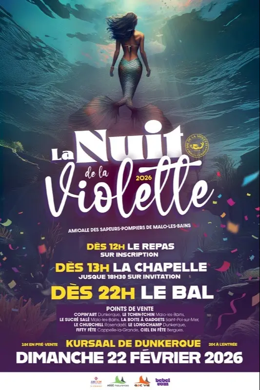 Dès 22H : Le Bal >>Mise en vente des billets pour la Nuit de la Violette dans les points de vente ci-après.