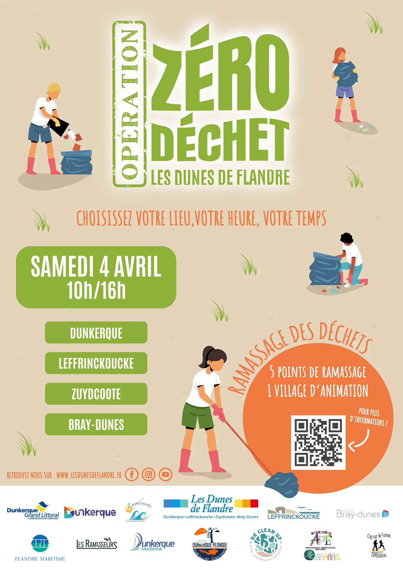 A l'initiative des Dunes de Flandre, le samedi 4 avril, des associations locales se mobilisent pour une grande journée de nettoyage des plages et des bassins du littoral. L'Opération Zéro Déchet – les Dunes de Flandre, inscrite dans la charte Plage Sans Plastique initiée par la la Communauté Urbaine de Dunkerque (CUD) et les communes, vise à encourager un changement positif dans les comportements en matière de protection de l'environnement côtier.