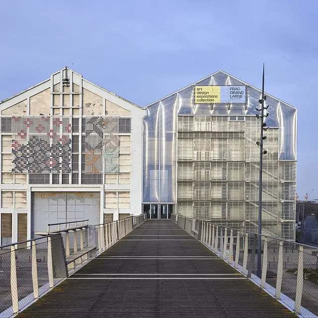 Parcourez deux bâtiments jumeaux aux fonctions complémentaires, d'un côté bâtiment des Ateliers et Chantiers de France de 1949, et de l'autre un Frac « Nouvelle génération » conçu sur-mesure pour les missions du Frac et ses 2000 oeuvres. Comprenez ces deux espaces reliant mémoire industrielle et innovation contemporaine conçue par les architectes Anne Lacaton et Jean-Philippe Vassal (prix Pritzker 2021) et apprenez-en davantage sur leurs conceptions techniques.