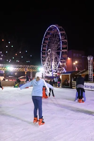 Chaussez vos patins et venez profiter des joies de la glisse ! Notre grande patinoire éphémère est de retour et vous attend au cœur de la féérie du Marché de Noël. Que vous soyez experts ou débutants, c'est l'endroit parfait pour vous amuser, tenter des figures, ou simplement partager un moment de rire et de détente en famille ou entre amis. Venez créer vos plus beaux souvenirs d'hiver sur la glace !