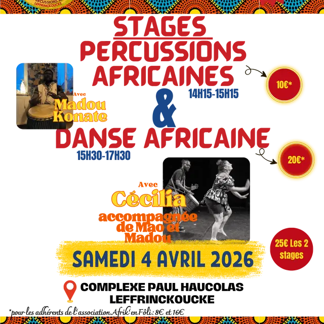 L'association Afrik'en Foli, basée à Leffrinckoucke et dédiée à la promotion des danses et percussions africaines, organise une après-midi de stages ouverts à tous les publics, quel que soit le niveau de pratique.