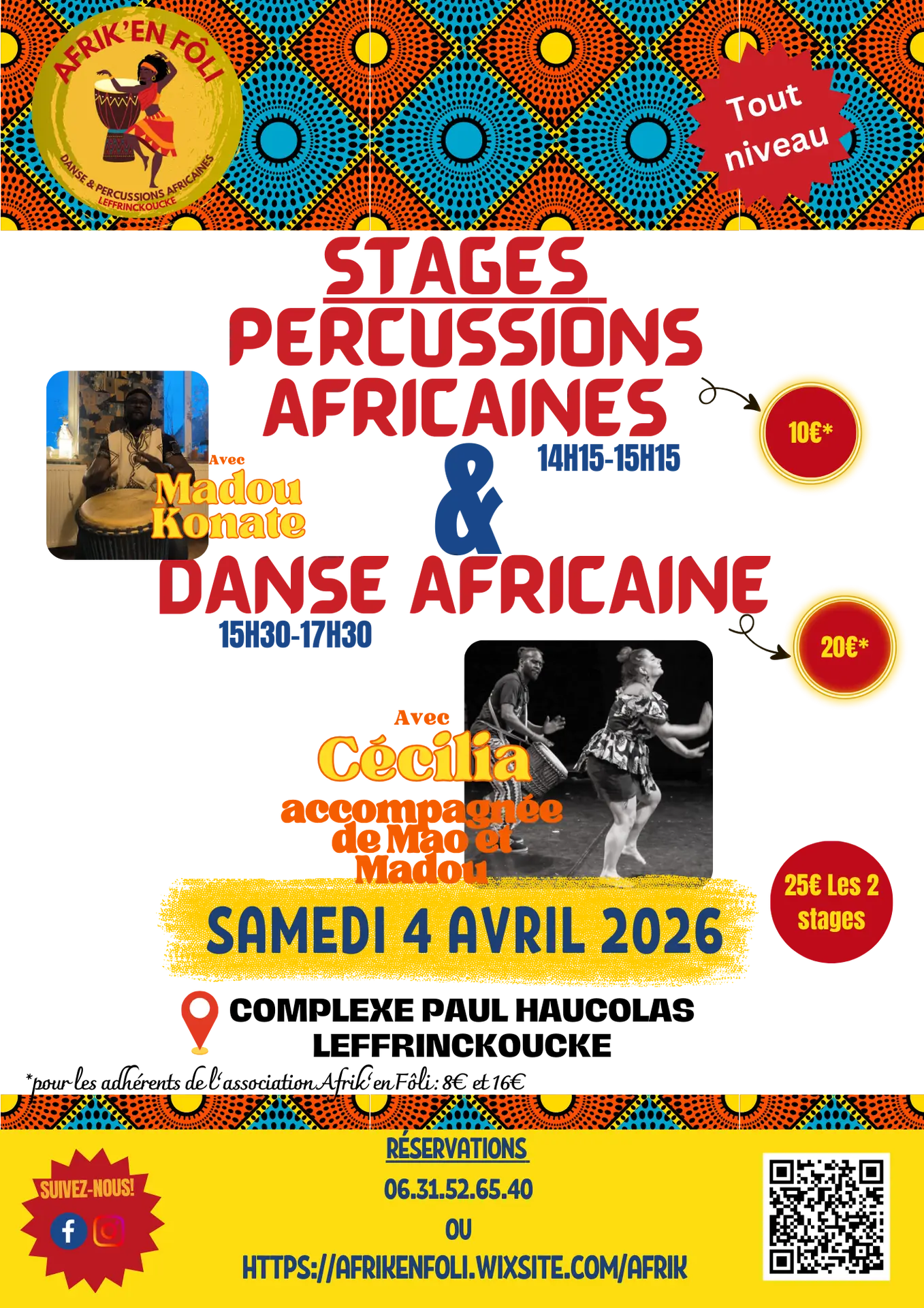 Stages de percussions et danse africaines – Samedi 4 avril 2026