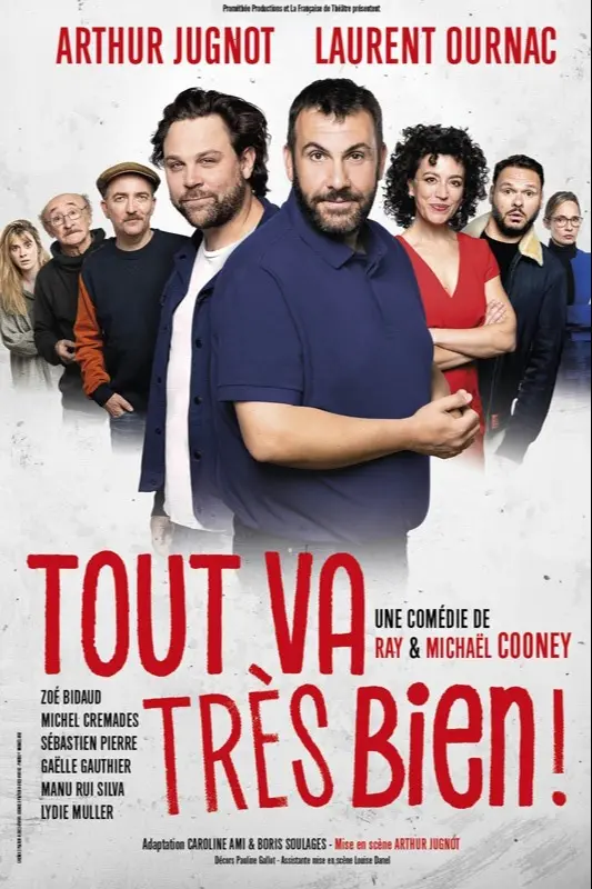 « Tout va très bien », c'est l'histoire hilarante de 3 frères qui auraient mieux fait de ne pas se retrouver ce jour-là ! Tom et sa femme sont prêts à recevoir la directrice de l'Agence National Anglaise d'Adoption. Ils vont enfin réaliser leur rêve et adopter un bébé. C'était sans compter sur la présence des deux frères de Tom, d'un policier trop présent, de deux réfugiés clandestins et d'un passeur russe…